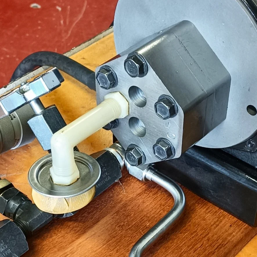 Setup bench and load tested on 24V with factory relief valve set at 1400PSI. See videos below