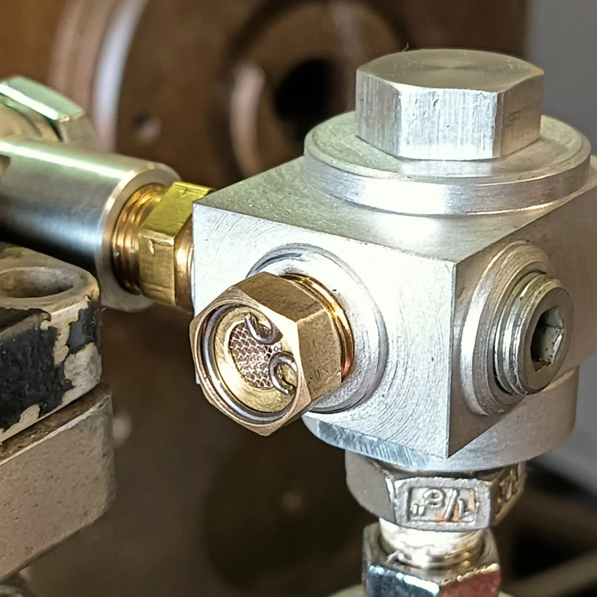 Block (cast iron) modified - standard check and return valves removed, internal gallery plugged for use of #8 side ports.