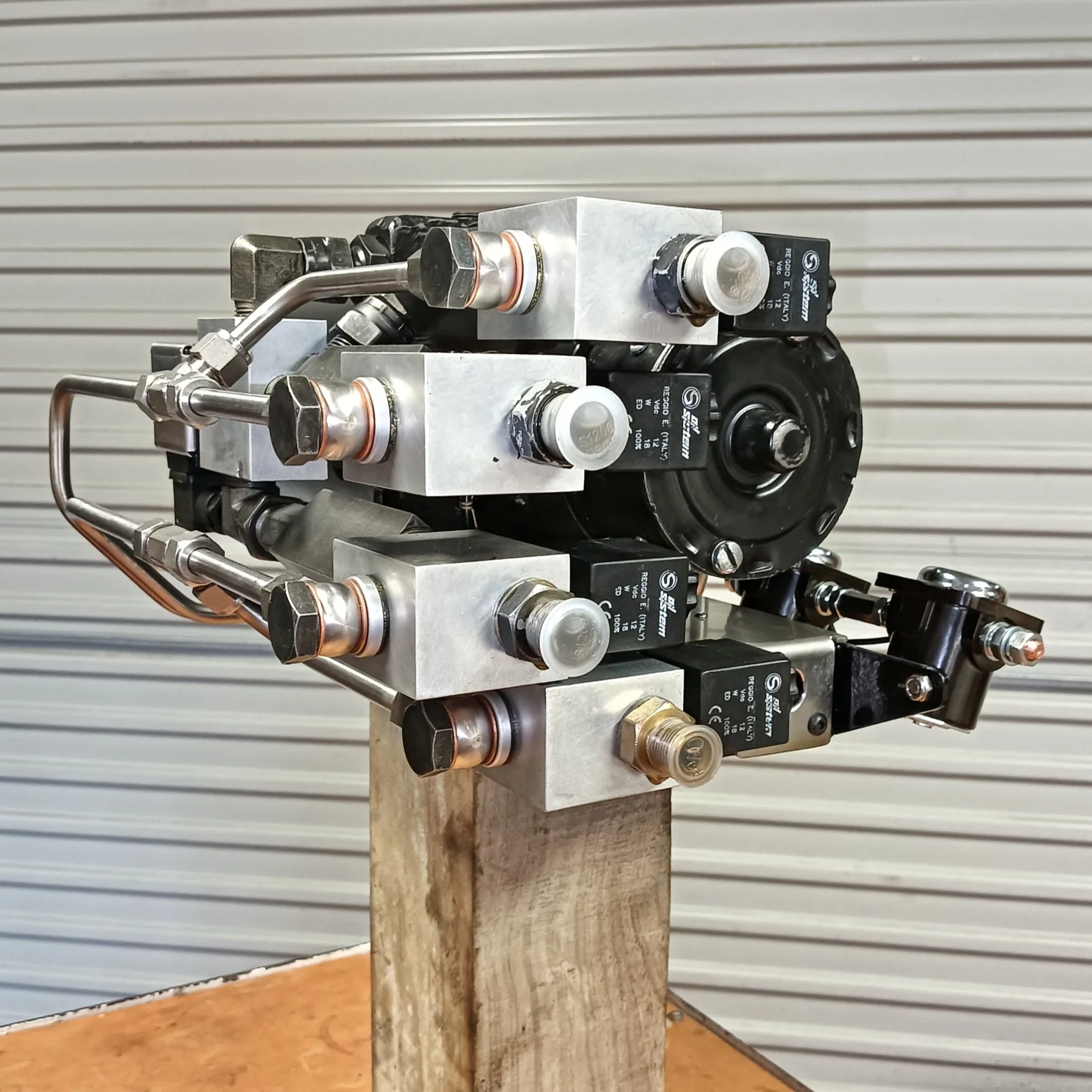 Setup attached to steel mount that includes wiring enclosure under the motor, enclosure doubles as valving mount. Wiring all run to connection block inside enclosure lid - connect your switch cable here